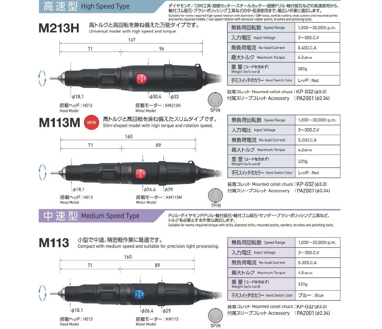 Minimo Standard Rotary, Straight Rotary Handpiece, High Speed type, Medium Speed Type, Low Speed Type, Low Speed Geared Type, Ultrahigh Speed Type