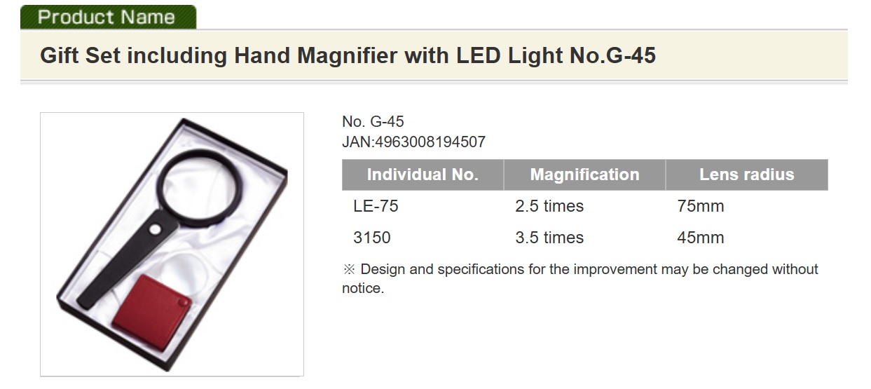 I.L.K Gift Set Including Hand Magnifier with LED Light No.G-45