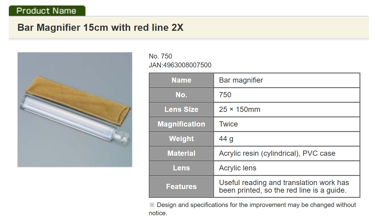 I.L.K Bar Magnifier 15cm with Red Line 2X, Bar Loupe 2X