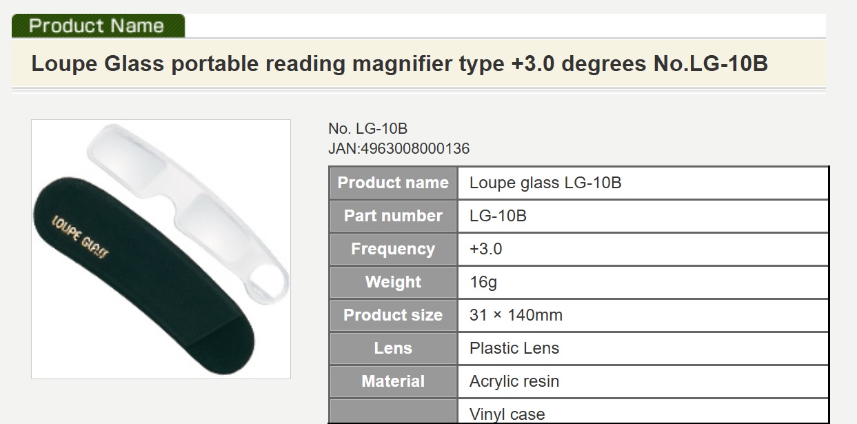 I.L.K Loupe Glass Portable Reading Magnifier Type 3.0 Degrees No.LG-10B