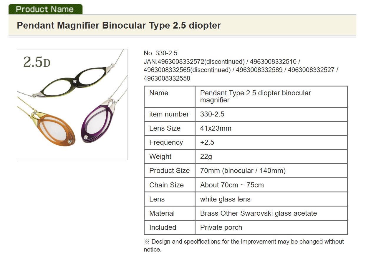 I.L.K Pendant Magnifier Binocular Type 2.5 diopter