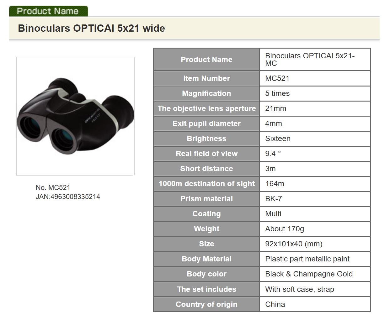 I.L.K Binoculars Optical 5x21 Wide