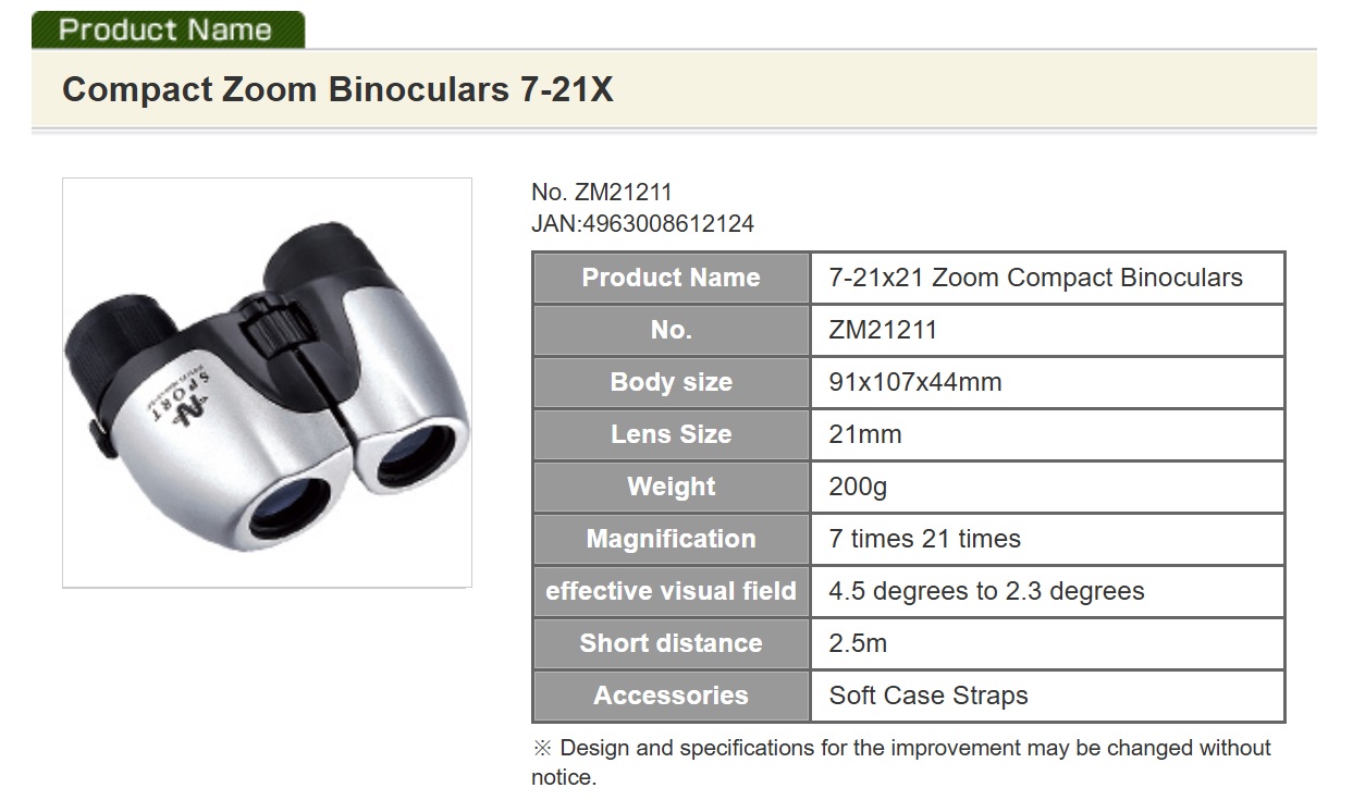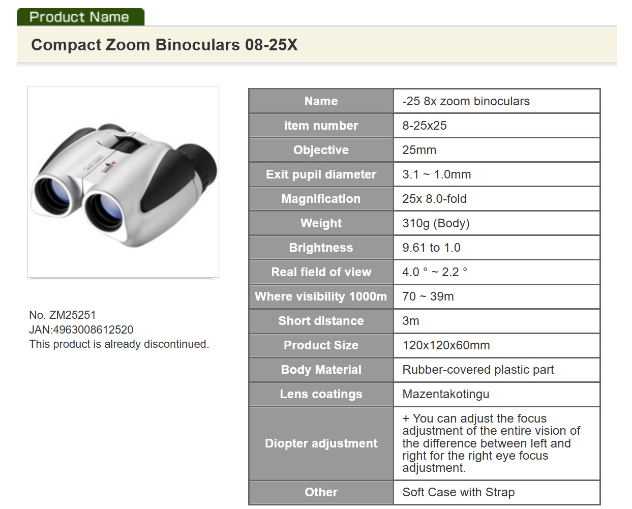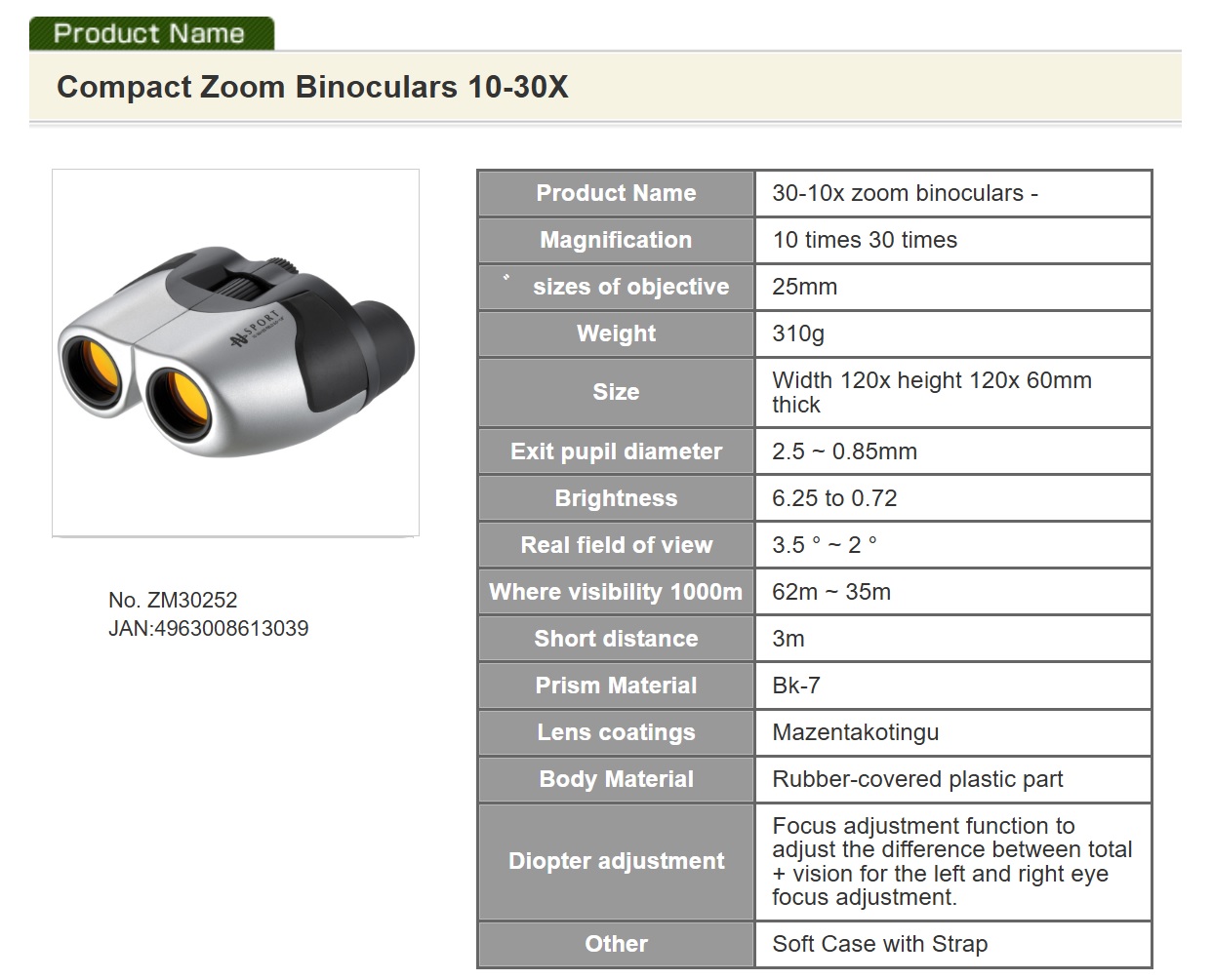 I.L.K Compact Zoom Binoculars 08-25X, Compact Zoom Binoculars 10-30X, Compact Zoom Binoculars 7-21X