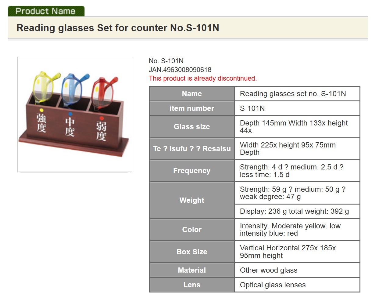 I.L.K Reading Glasses Set for Counter No.S-101N