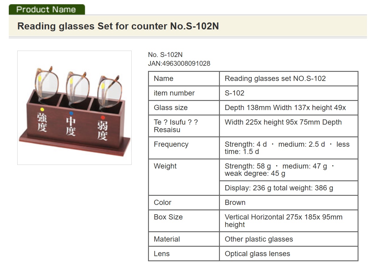 I.L.K Reading Glasses Set for Counter No.S-102N