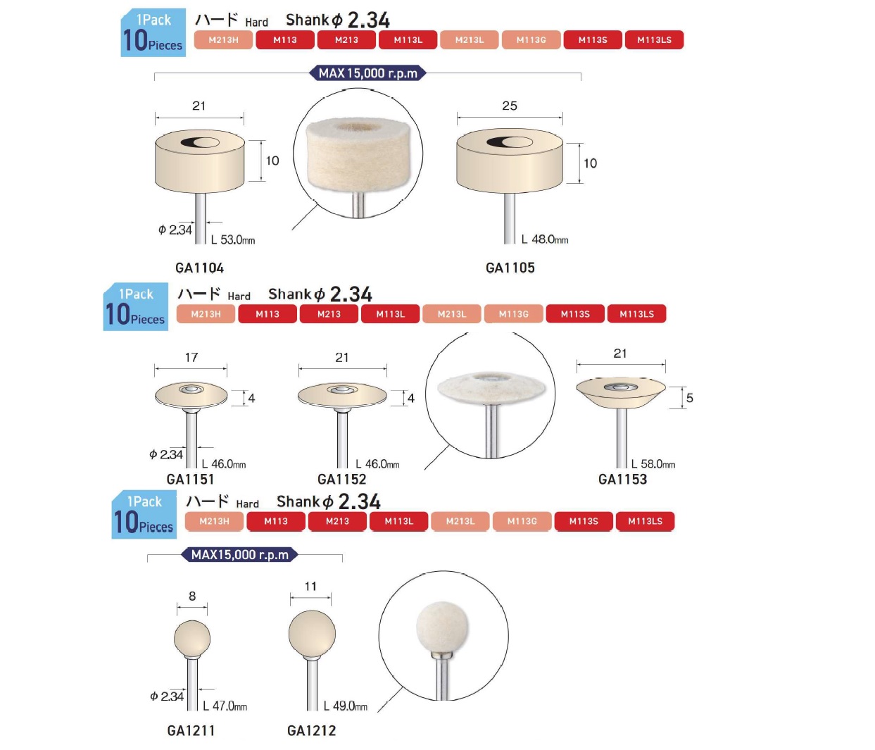 Minimo Felt Points, Advanced Felt Points, Long Shart Felt Points, FR Polishing Points, Layered Polishing Points, Slit Felt Points, Polishig Wood Points, Soft Hard, Green Felt Points (With Chrome Oxide), Yellow Felt Points (With Alumina Oxide), FR Polishing Points, Layer Points, Cotton Mop, Cotton, Felt, Flannel, Polishing Wood Points, Super Hard, Polishing Tools