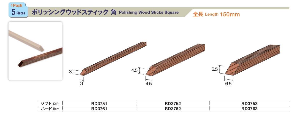 Minimo Hand Tools - Polishing Sticks, Polishing Wood Sticks Flat, Polishing Wood Sticks Square, Polishing Wood Sticks Round