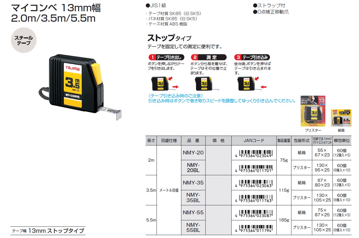 Code : NMY-20, NMY-20BL, NMY-35, NMY-35BL, NMY-55, NMY-55BL Brand : Tajima
