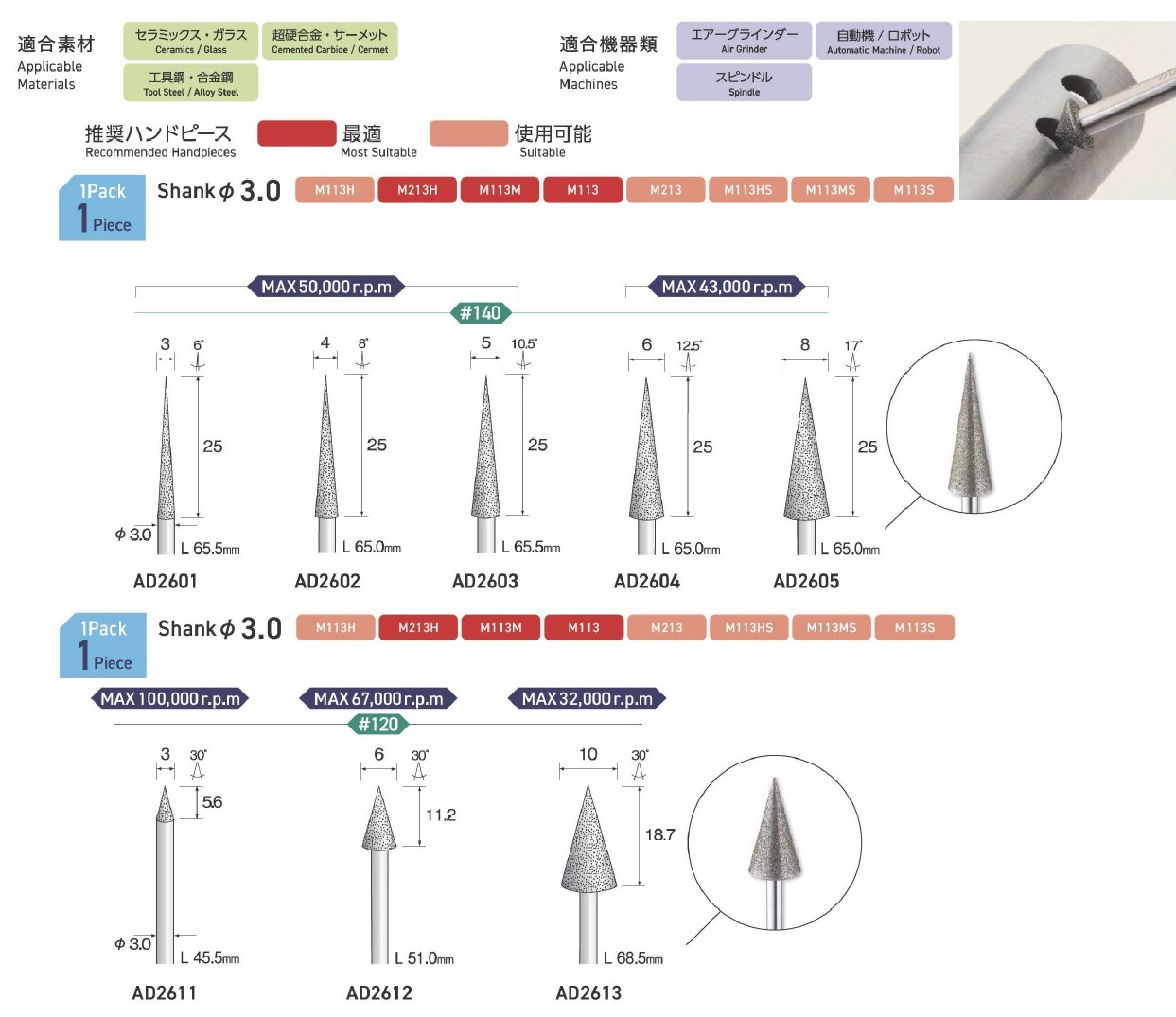 Minimo Diamond Plated Points, Shank, Sintered Diamond Points, Special Resin Diamond Points, Diamond Rubber Point, CBN Plated Points