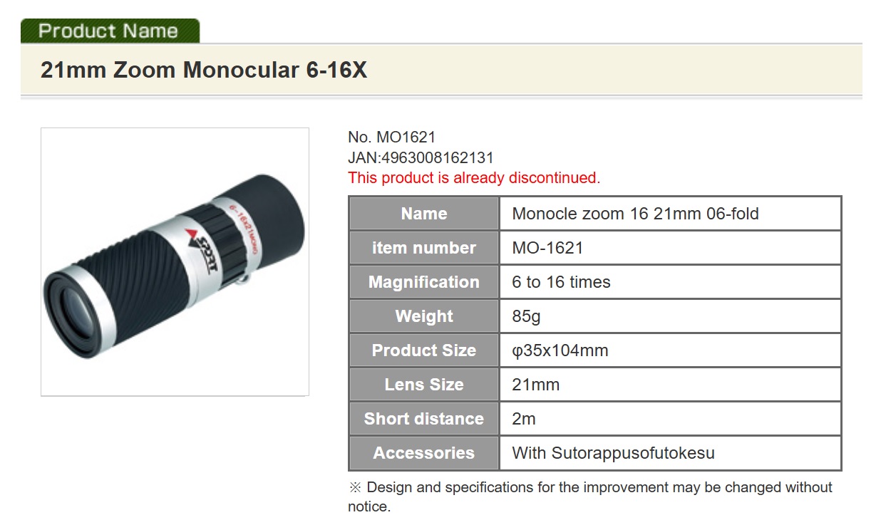 I.L.K 21mm Zoom Monocular 6-16X