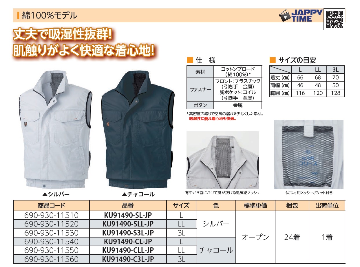 Jappy Water Filling Vest Bodycool, Fan-compatible wear, air-conditioned Fujin Clothing, Clean Mell, Work Fan Mountable Wear, Work Air Conditioning Clothes