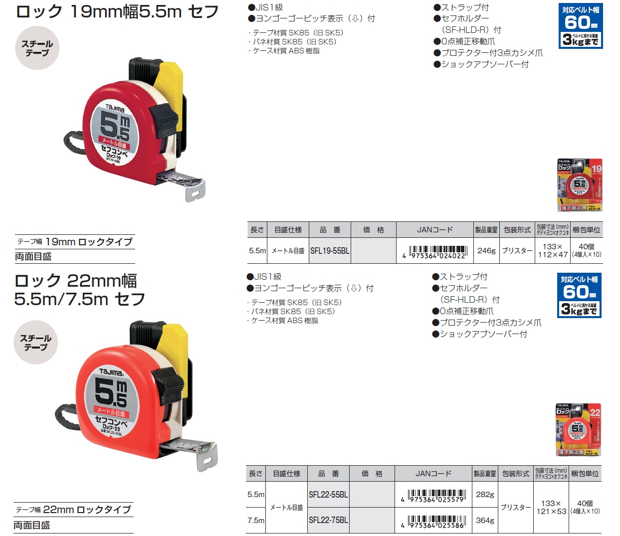 Code : SFL19-55BL, SFL22-55BL, SFL22-75BL Brand : Tajima