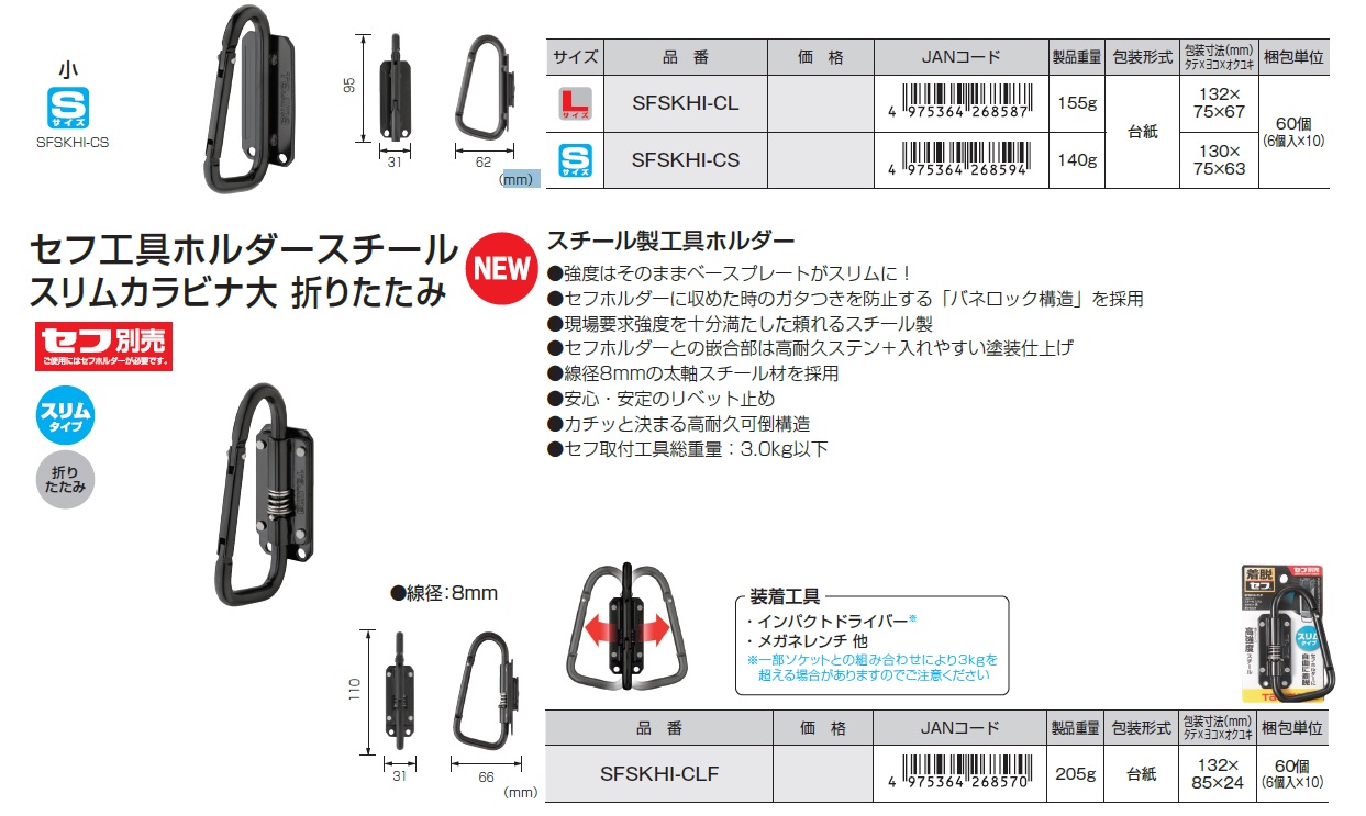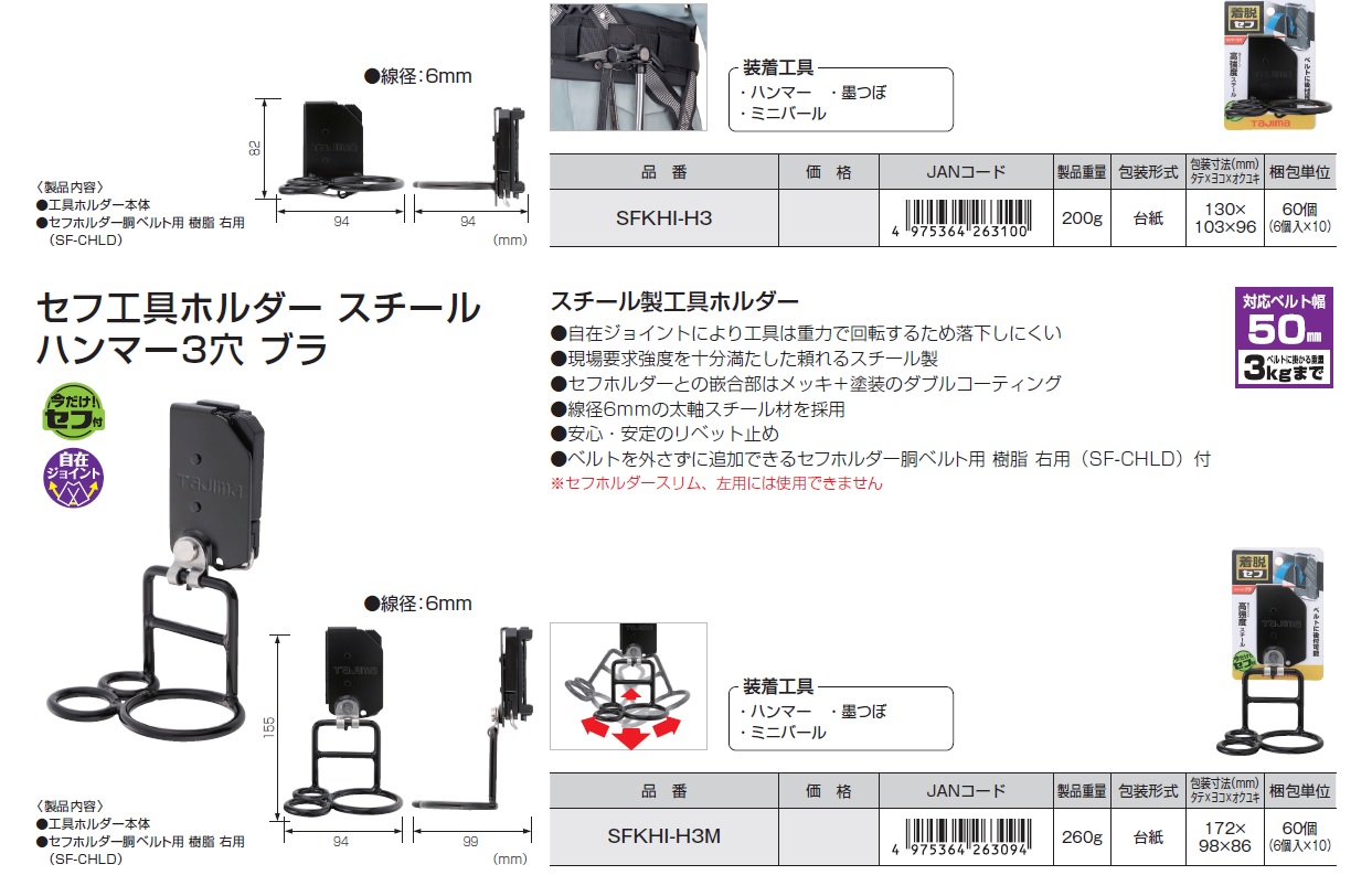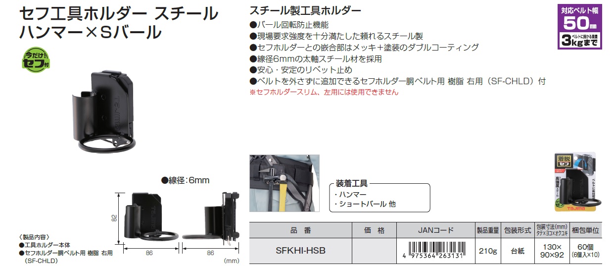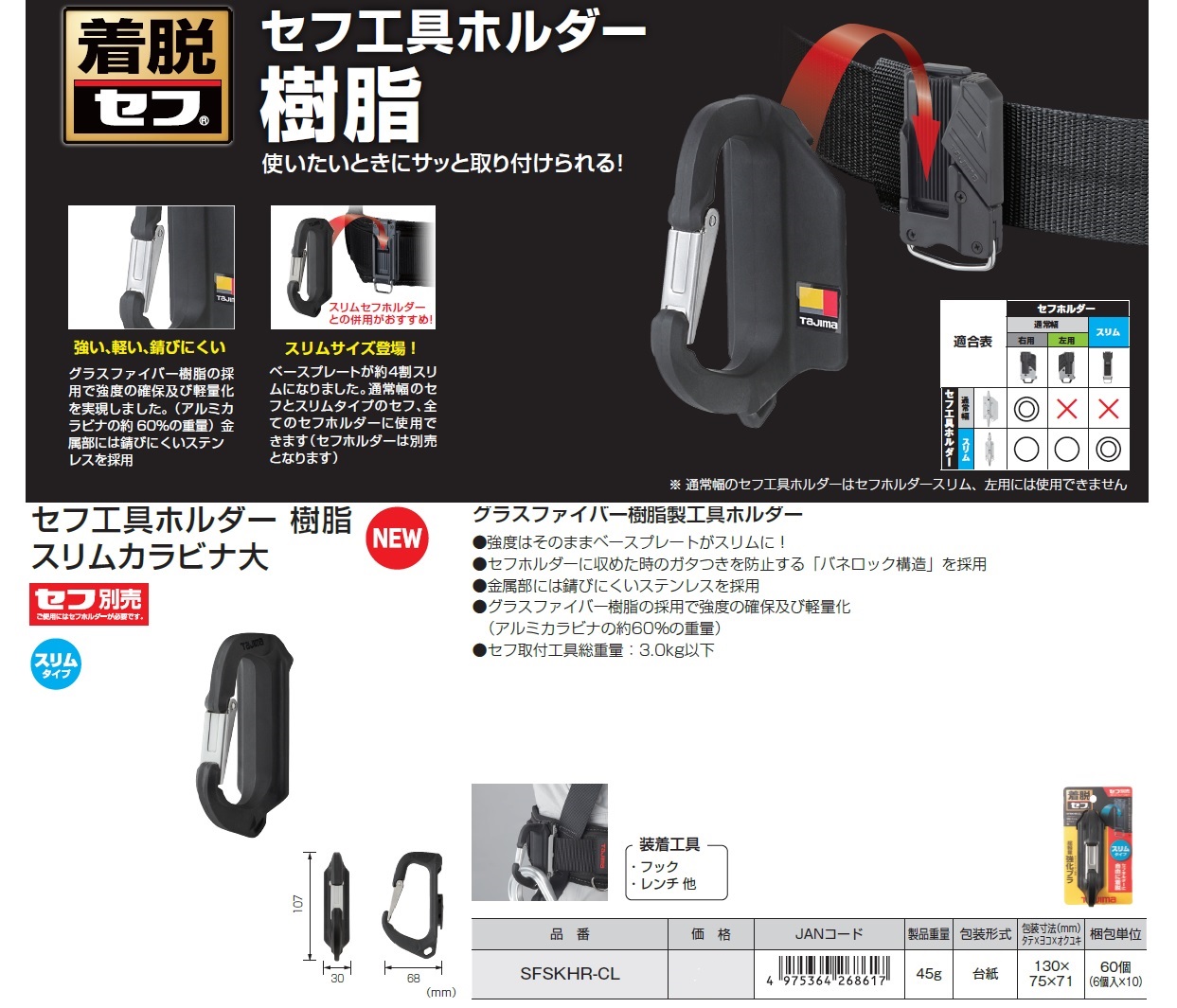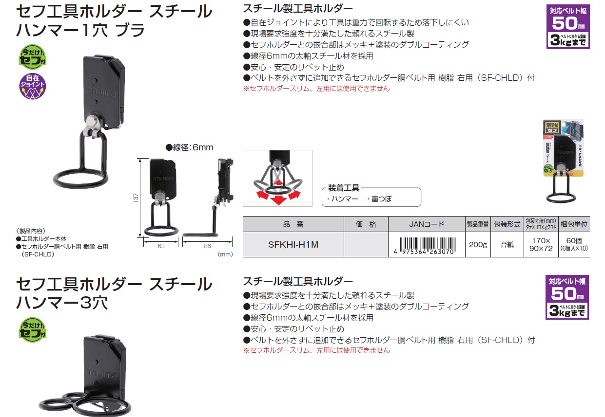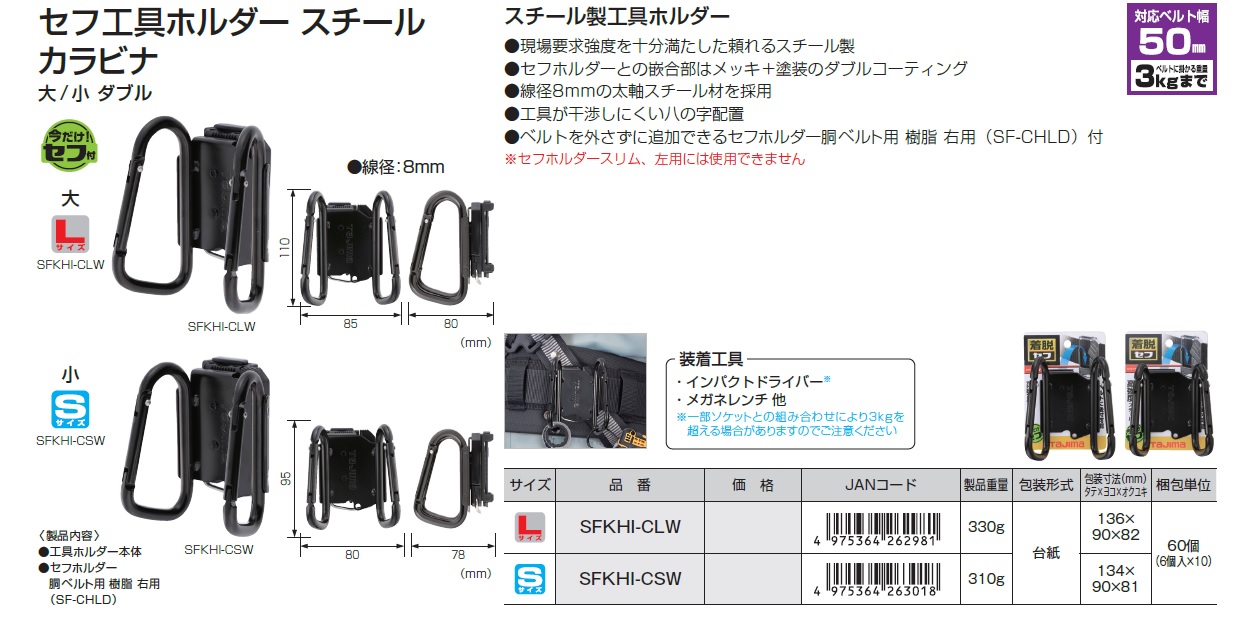 Tajima Safe System Safe Tool Holder, Steel Tool Holder, Tools Detachable Tool Holder Steel Hammer Holder, Removable Tool Holder, Steel Waist Tool Holder Hammer, Tool Holder High Strength Steel Hammer, Steel Tool Holder, Steel Waist Tool Holder Drift Pin, Ssfe Tool Holder Plastic Slim Carabiner