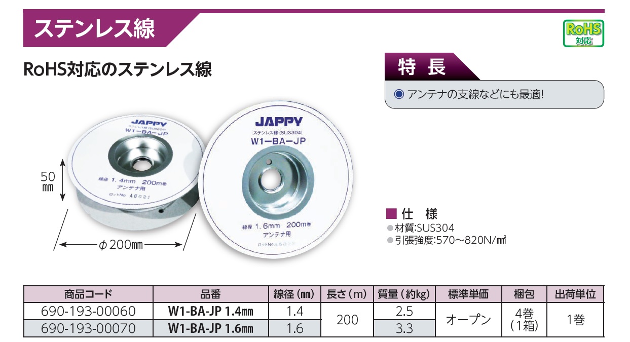 Code : W1-BA-JP 1.4mm, W1-BA-JP 1.6mm Brand : Jappy