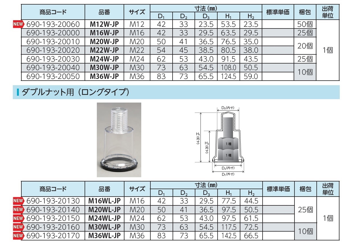 M8S-JP, M10S-JP, M12S-JP, M16S-JP, M20S-JP, M24S-JP, M12W-JP, M16W-JP, M20W-JP, M22W-JP, M24W-JP, M30W-JP, M36W-JP, M16WL-JP, M20WL-JP, M24WL-JP, M30WL-JP, M36WL-JP