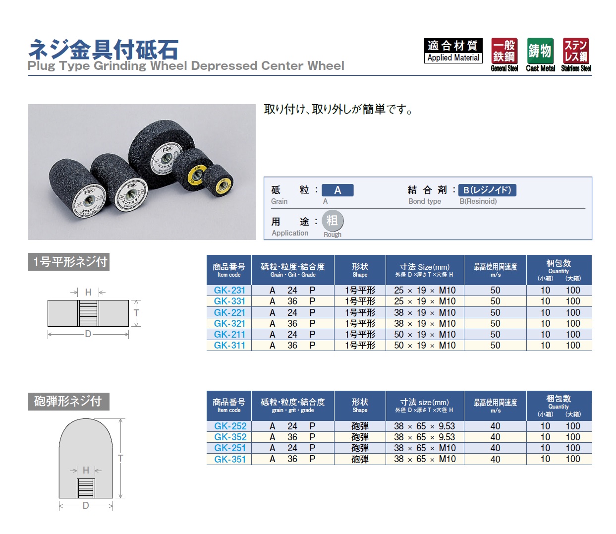 FSK Plug Type Grinding Wheel Depressed Center Wheel