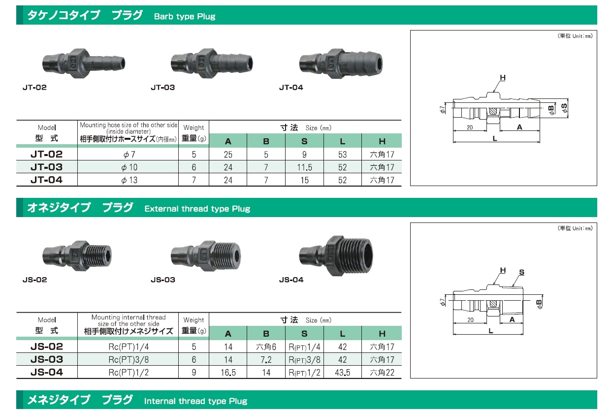 Joplax Barb Type Plug, External Thread Type Plug, Internal Thernal Type Plug, Nut Type Type Plug